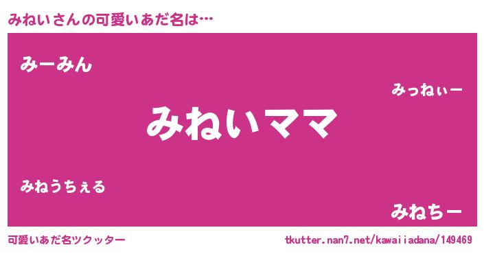 | 意味不明あだ名 | 『永久保存みねい』『みねいフォーエバー』 |
