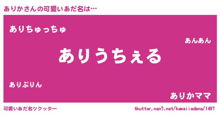 | 意味不明あだ名 | 『自称ありか』『眠気覚ましガムありか味』 |