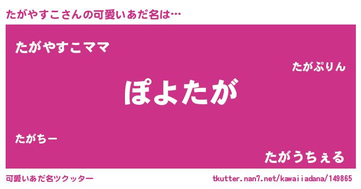 | ヘコむあだ名 | 『たがやすこ(小並感)』『酢こんぶ』 |
