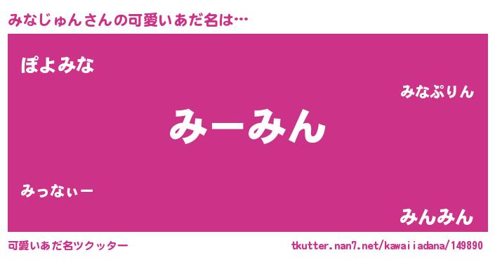 | 恥ずかしいあだ名 | 『プリティーみなじゅん』『ミナリンリン』 |