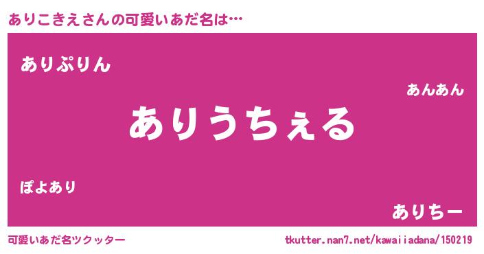 | 男性向けラノベタイトル風あだ名 | 『Re:ありこきえから始める異世界生活』 |