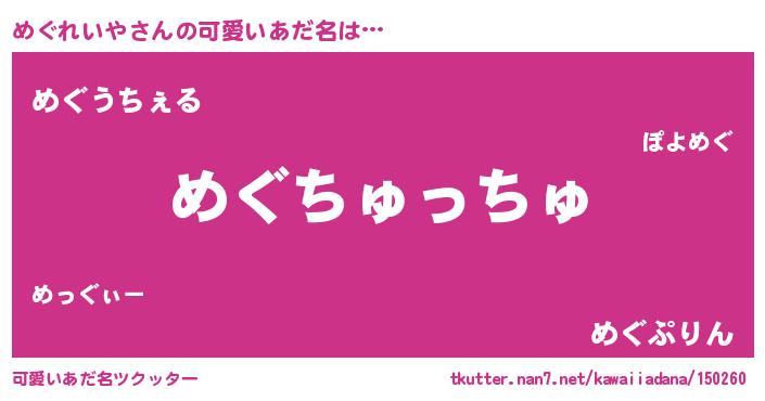 | ヘコむあだ名 | 『めぐっちょ』『めぐっふぃ~』 |