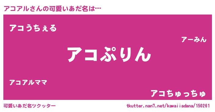 | ヘコむあだ名 | 『アコアル(笑)』『アコを』 |