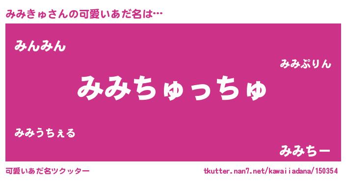 | 女子向けラノベタイトル風あだ名 | 『みみきゅ夫妻のなれそめ』 |