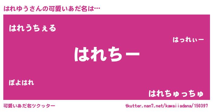 | ファンタジー風あだ名 | 『エターナルハレユウー』『ゼハレトゥ』 |