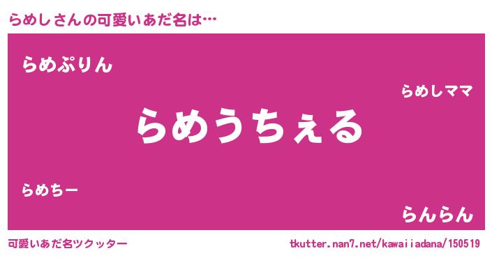 | 意味不明あだ名 | 『自称らめし』『めかぶ科らめし属』 |