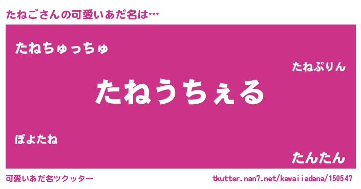 | 欧米人風あだ名 | 『ケンブリッジたねご』『ダニエルたねご』 |