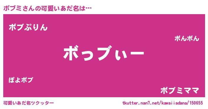 | ヘコむあだ名 | 『ボブ太郎』『ボブミ(爆)』『豆乳』 |