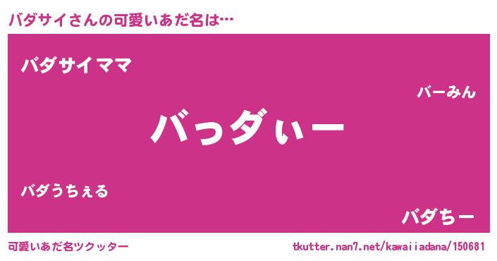 | 女子向けラノベタイトル風あだ名 | 『バダサイの卵を拾いまして』 |