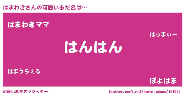 | 恥ずかしいあだ名 | 『プリティーはまわき』『はまちん』 |