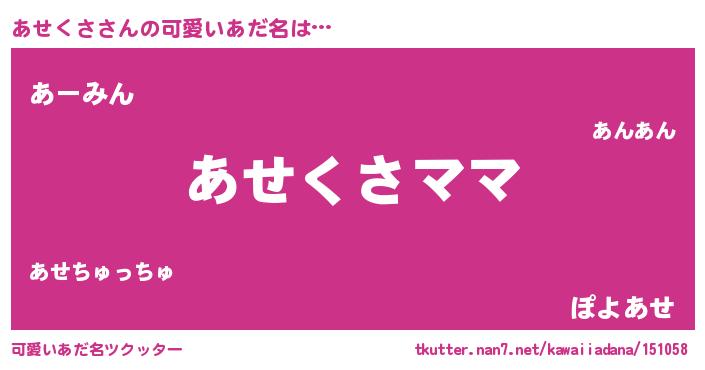 | 意味不明あだ名 | 『永久保存あせくさ』『ペロリンあせくさ』 |