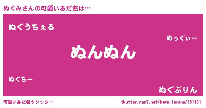 | 男性向けラノベタイトル風あだ名 | 『ぬぐみの憂鬱』『はたらくぬぐみさま!』 |