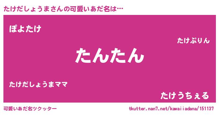 | ヘコむあだ名 | 『たけにー』『たけだしょうま(笑)』 |