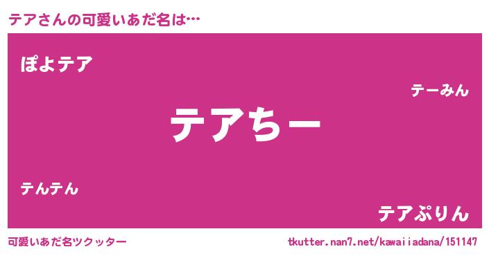 | ヘコむあだ名 | 『つくし』『テアふぇ~』『テア(笑)』 |