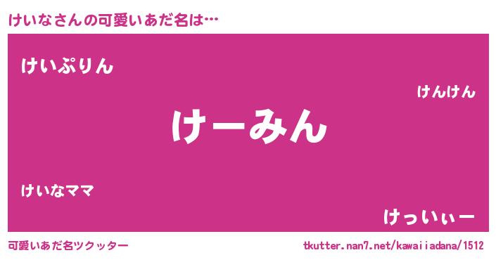 | 男性向けラノベタイトル風あだ名 | 『うちのけいなが世界を掌握している!』 |