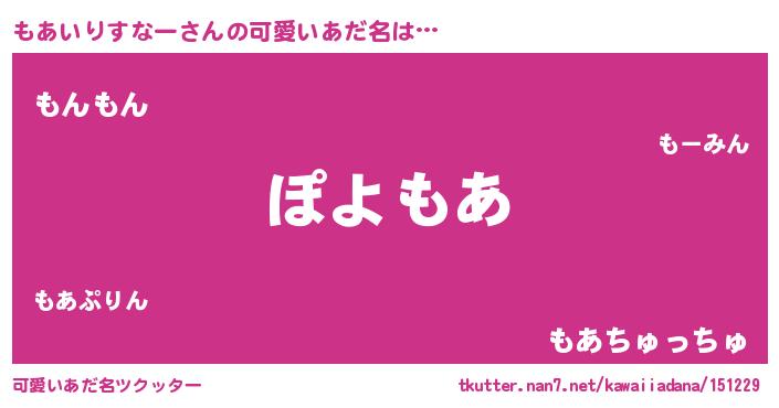 | ヘコむあだ名 | 『もあにー』『もあいりすなー(小並感)』 |