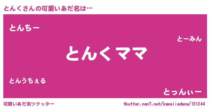 | 意味不明あだ名 | 『永久保存とんく』『とんくフォーエバー』 |