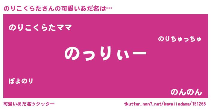 | ヘコむあだ名 | 『のりぷりん』『のりこくらた(笑)』 |