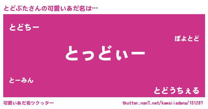 | 男性向けラノベタイトル風あだ名 | 『とどぶたに滅ぼされるだけの簡単なお仕事です』 |