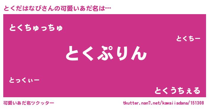 | 女子向けラノベタイトル風あだ名 | 『とくだはなびの玉の輿計画!』 |