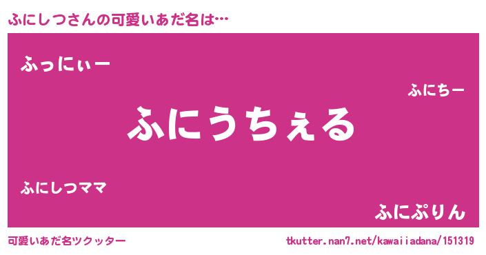 | 意味不明あだ名 | 『自称ふにしつ』『たけのこ科ふにしつ属』 |