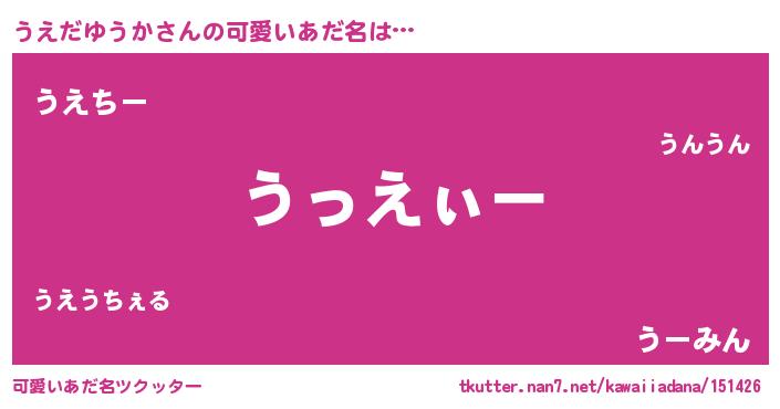 | 女子向けラノベタイトル風あだ名 | 『うえだゆうかの卵を拾いまして』 |