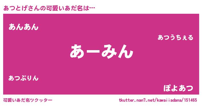| 恥ずかしいあだ名 | 『プリティーあつとげ』『アツリンリン』 |