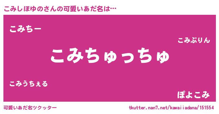 | 女子向けラノベタイトル風あだ名 | 『死神こみしほゆのの再婚』 |