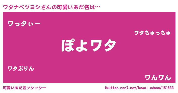 | ポケモン風あだ名 | 『ワータイ』『ヒワタナベツヨシ』 |