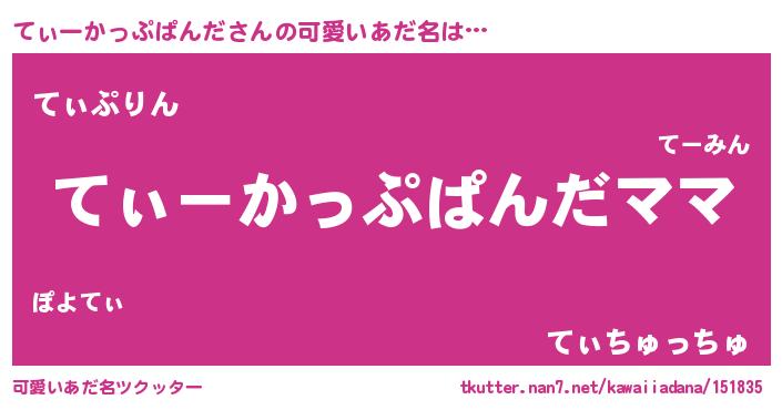 | 意味不明あだ名 | 『永久保存てぃーかっぷぱんだ』 |