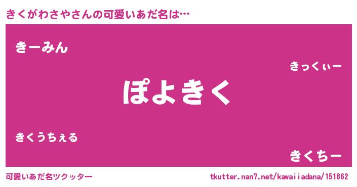 | ヒーロー風カッコイイあだ名 | 『仮面キクダー』『幻影騎士キク』 |