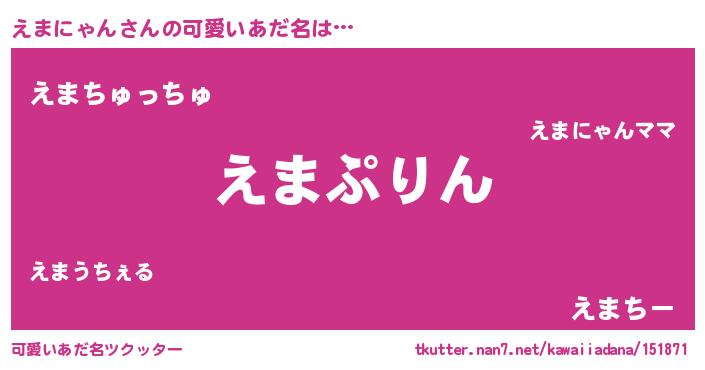 | 男性向けラノベタイトル風あだ名 | 『転生したらえまにゃんだった件』 |