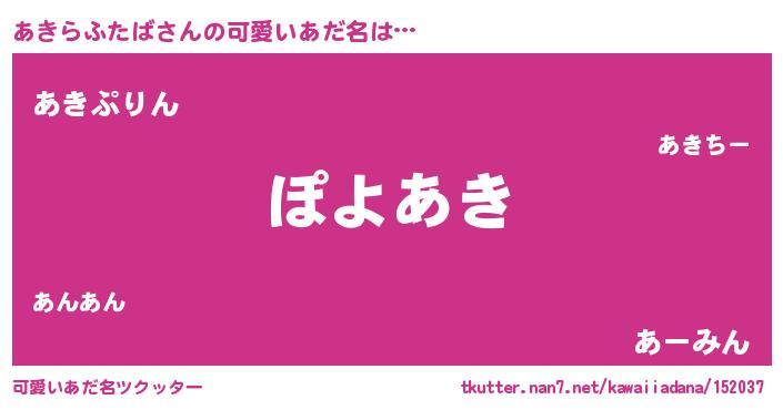 | 意味不明あだ名 | 『住所不定無職あきらふたば(81歳)』 |