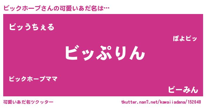 | ヘコむあだ名 | 『ビックホープ(震え声)』『ビッぷりん』 |