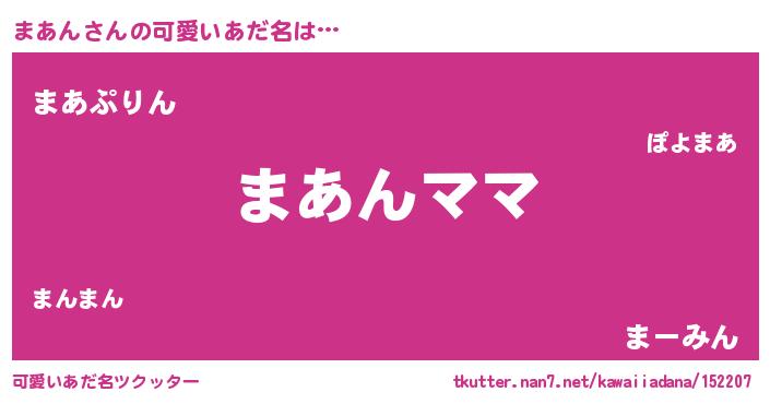 | 恥ずかしいあだ名 | 『まあちん』『プリティーまあん』 |