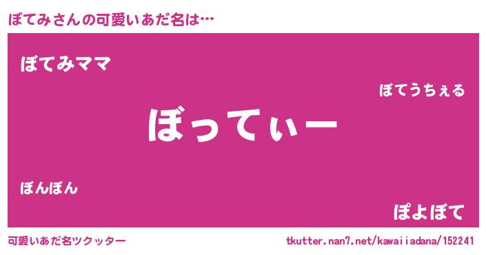 | ポケモン風あだ名 | 『ヒボテミ』『ゼニボテ』『ボーテイ』 |