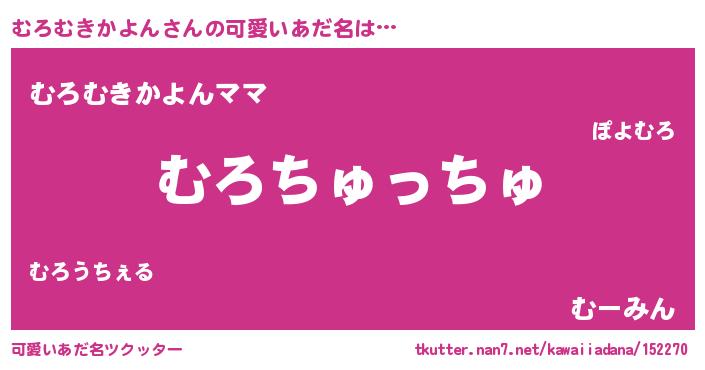 | ヘコむあだ名 | 『むろむきかよん(小並感)』『むろっふぃ~』 |