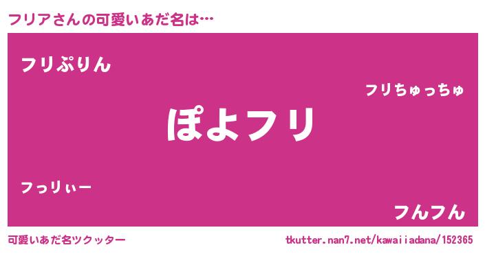 | 恥ずかしいあだ名 | 『プリティーフリア』『フリリンリン』 |