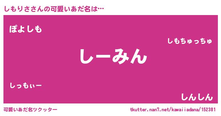 | 意味不明あだ名 | 『住所不定無職しもりさ(39歳)』 |