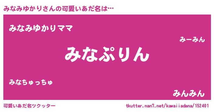 | ヘコむあだ名 | 『みなみゆかり(苦笑)』『みなにゅー』 |
