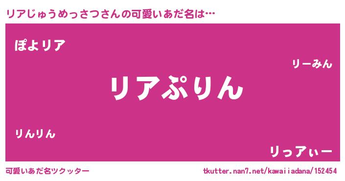 | 恥ずかしいあだ名 | 『リアリンリン』『リアちん』 |