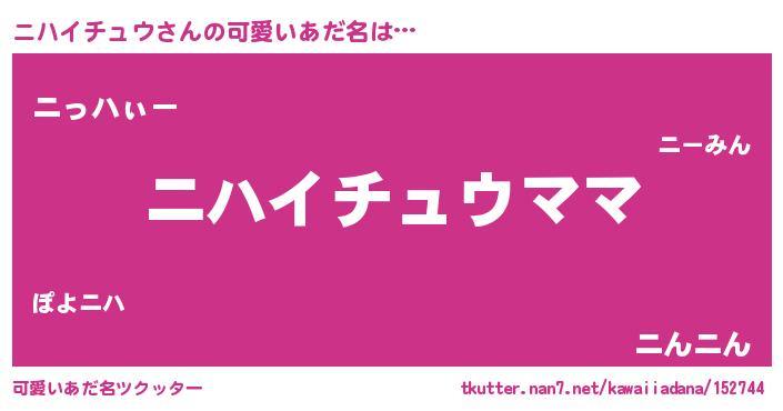 | 男性向けラノベタイトル風あだ名 | 『ニハイチュウという概念が存在しない退屈な世界 』 |