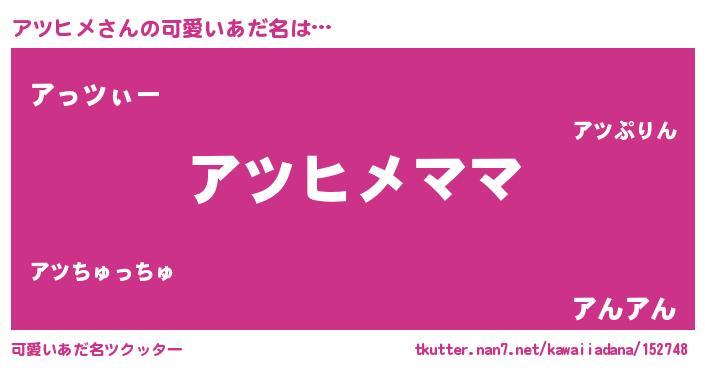 | 意味不明あだ名 | 『永久保存アツヒメ』『ペロリンアツヒメ』 |