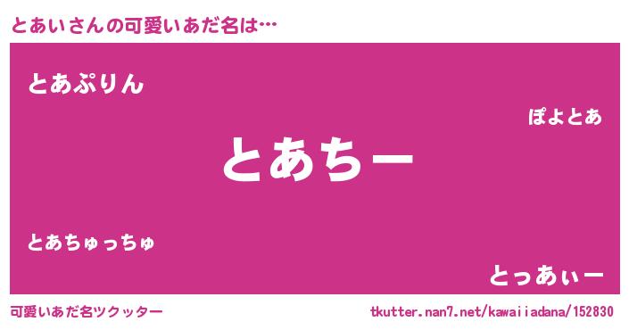 | ヘコむあだ名 | 『つくし』『とあお』『とあもー』 |