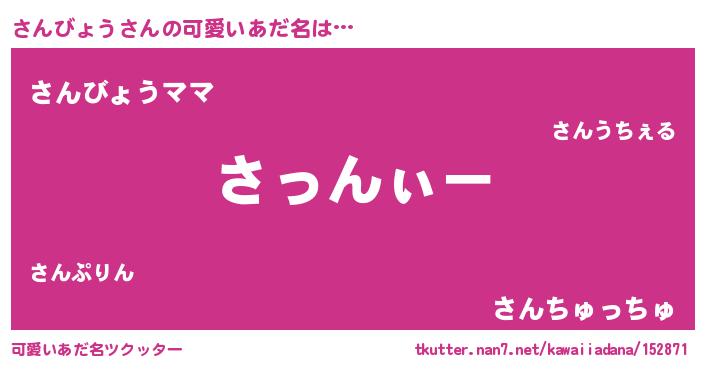 | 女子向けラノベタイトル風あだ名 | 『さんびょうの卵を拾いまして』 |