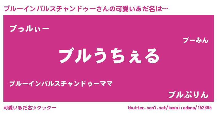 | 女子向けラノベタイトル風あだ名 | 『ブルーインパルスチャンドゥーアンティーク』 |