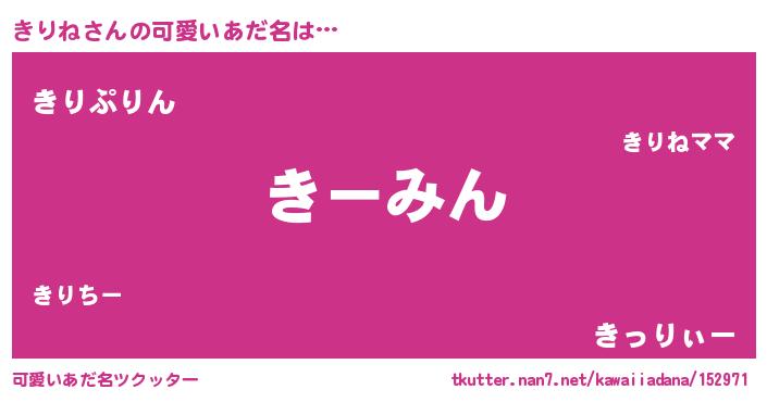 | 意味不明あだ名 | 『エリンギ科きりね属』『永久保存きりね』 |