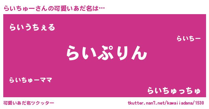 | 恥ずかしいあだ名 | 『ライチューデラックス』『らいっちょ』 |