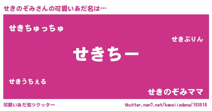 | 意味不明あだ名 | 『せきのぞみフォーエバー』 |