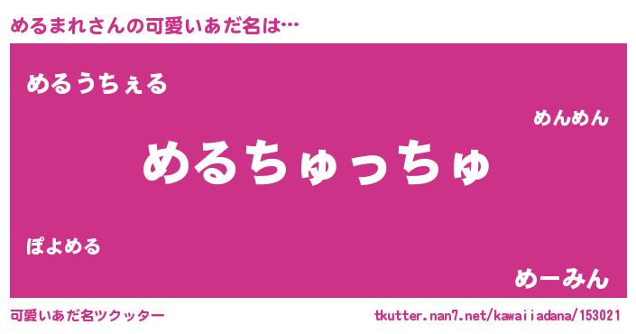 | 2回繰り返すあだ名 | 『ぷーぷー』『むちむち』『めるめる』 |